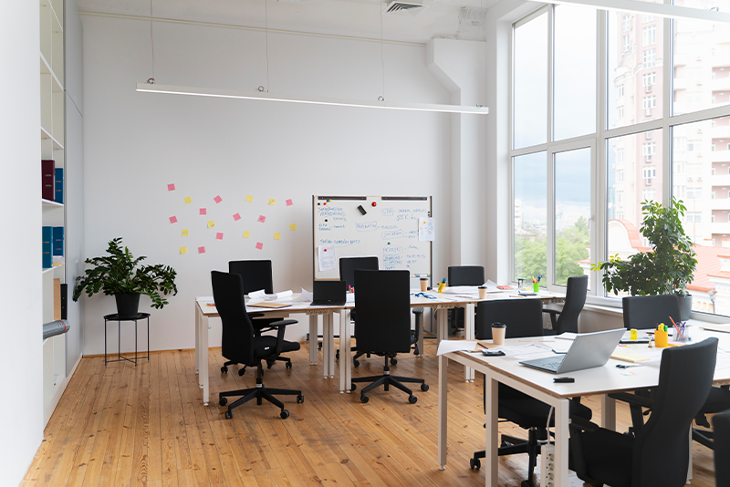 Our interior designs enhance workflow, improve employee comfort, and create a lasting impression on visitors. We focus on open space concepts, ergonomic furniture, noise control, and optimal lighting. Conference rooms, private offices, collaborative zones, and reception areas are all tailored to your company culture and operational needs.